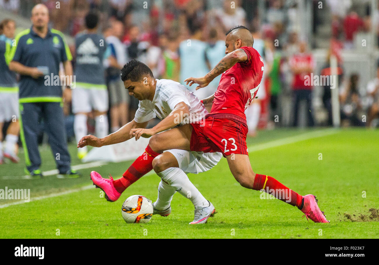 Munich Germany 05th Aug 2015 Munich S Arturo Vidal R And Madrid S Casemiro In Action During The Audi Cup Final Soccer Match Fc Bayern Munich Vs Real Madrid In Munich Germany 05 August
