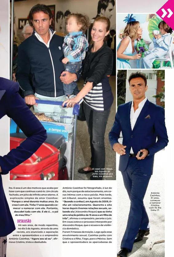 Pus o miúdo a trabalhar que a mãe precisa de fotógrafo. Na altura Cristina Ferreira era já uma estrela em ascensão na TVI Tiago o seu único filho tinha 1 ano e a apresentadora mantinha uma relação feliz com António Casinhas. António Casinhas comenta reconciliação com Cristina Ferreira Cristina e Casinhas em 2009 Cristina Ferreira com o marido Antonio Casinhas em 2010 Uma das últimas aparições conjuntas do ex-casal Jantar de despedida de Jose Eduardo Moniz da TVI no Restaurante Kais em Lisboa Baptizado de Tiago filho da apresentadora Cristina Ferreira e de Antonio Casinhas na basilica do.